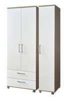 Mono bedroom furniture range which is manufactured in the UK. This bedroom furniture range is factory built and comes with long lasting metal drawer runners as standard and easy glide castors for ease of movement. The Mono Range is available in a white finish with a bardolino oak base, allowing it to match almost any bedroom design, not to mention the sleek stylish metal handles thats on this bedroom range. When choosing the large fitments dont worry about getting these upstairs as the wardrobes come in sections and once in a room of your choice they simply bolt together to make your own unique fitment, we have made some up for you to see but basically you can join any wardrobe.