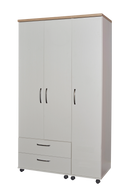 Siena bedroom furniture range which is manufactured in the UK. This bedroom furniture range is factory built and comes with long lasting metal drawer runners as standard and easy glide castors for ease of movement, choose from Kashmir grey ash or cream ash both which have an effective grain finish and a finished off with a 26mm bordeaux oak finish top which really makes this range stand out from the crowd, not to mention the sleek stylish metal handles thats on this bedroom range. When choosing the large fitments dont worry about getting these upstairs as the wardrobes come in sections and once in a room of your choice they simply bolt together to make your own unique fitment, we have made some up for you to see but basically you can join any wardrobe.